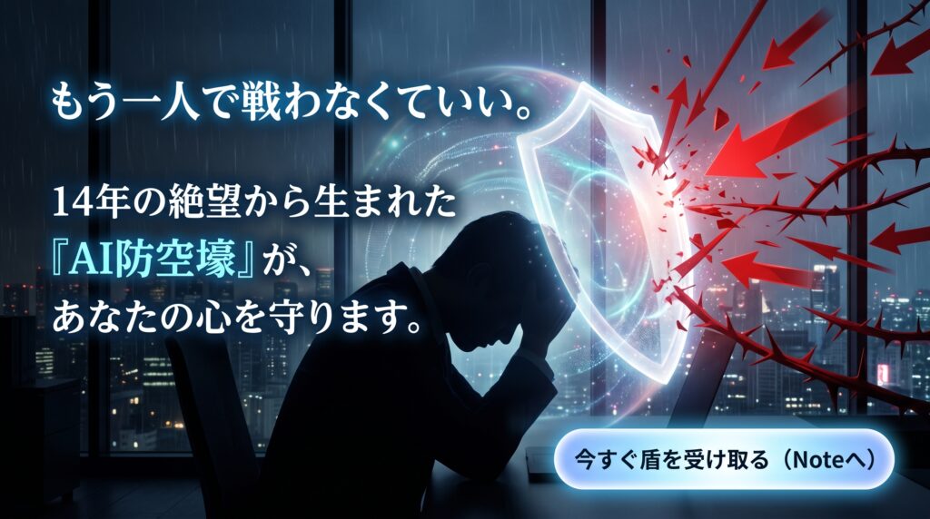 2年間の研究所の知恵と、14年の実戦での血を混ぜ合わせ、誰でも「自分だけの防空壕」を構築できる具体的なマニュアルをNoteに書き残しました。