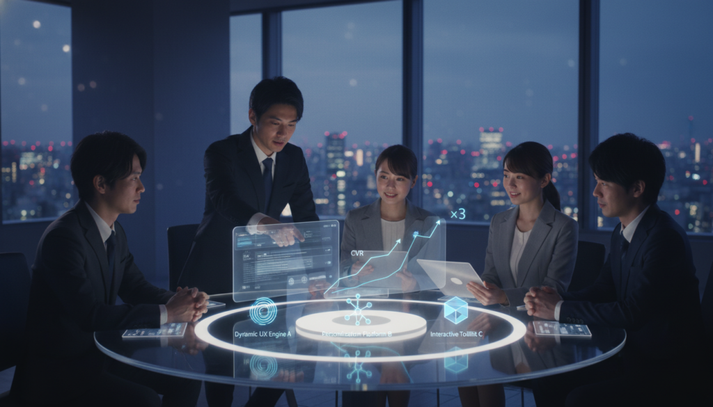 だからこそ、彼らが「次」に何を求めているのかをAIが高精度に予測し、先回りして最適な提案を行うゼロクリックUIが圧倒的な支持を集めているのです。実際、この「脱・検索」のアプローチを取り入れ、フロントエンドのAI活用を推進した企業では、CVRが従来の3倍以上に跳ね上がるケースも珍しくありません。顧客のインテントを先読みし、摩擦のない購買体験を提供する動的UXは、もはや最先端のバズワードにとどまらず、企業の売上を左右する必須のセールス戦略となっています。
