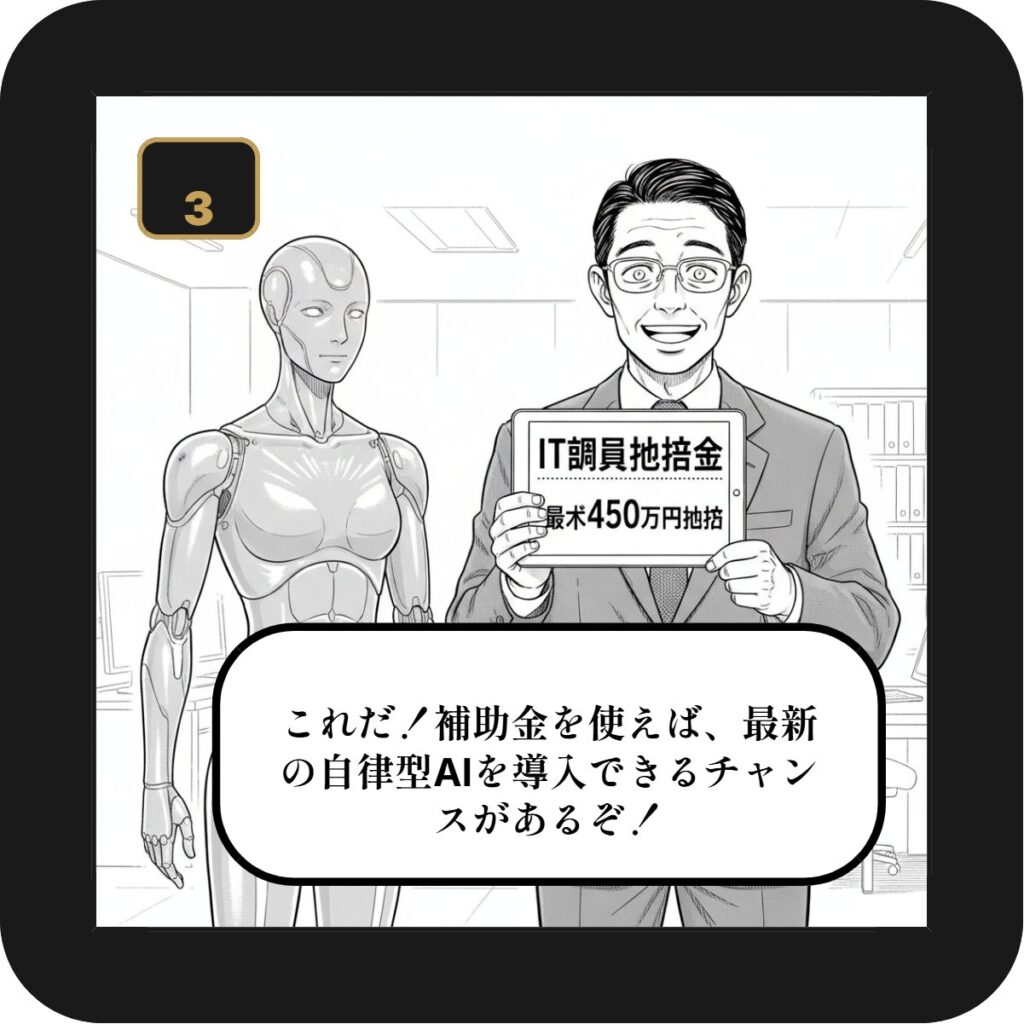 そして何より、冒頭でも触れた通り、2025年は国も企業のDX(デジタルトランスフォーメーション)や省力化投資を強力に後押ししています。「IT導入補助金」「中小企業省力化投資補助金」といった制度を活用すれば、この強力な「最強の営業マン(AI)」を、実質半額、あるいはそれ以下の負担で手に入れることも夢ではありません。