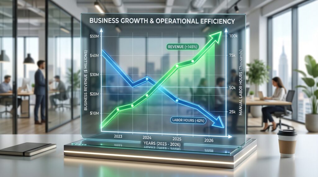 自動化による最大のメリットは「スケーラビリティ(拡張性)」です。手動で販売を行う場合、顧客が増えるほど対応コストが爆発的に増加しますが、自動化されたシステムでは顧客が100人でも1,000人でも管理コストはほぼ一定です。