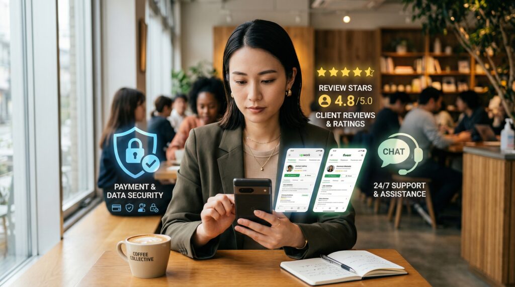 また、報酬の支払いサイクルにも注目しましょう。多くのプラットフォームでは「月末締め翌月払い」が主流ですが、資金繰りを安定させるためには、即日払い対応のサービスや、エスクロー(仮払い)方式を採用しているサイトを選ぶことが推奨されます。エスクロー方式とは、クライアントが事前に報酬をサイトへ預ける仕組みであり、「仕事を納品したのに報酬が支払われない」というトラブルを大幅に軽減します。サービス開始から数年経過している安定した運営元であれば、こうした仕組みが標準化されていることがほとんどです。(出典: 経済産業省『フリーランスとして安心して働ける環境を整備するためのガイドライン』)