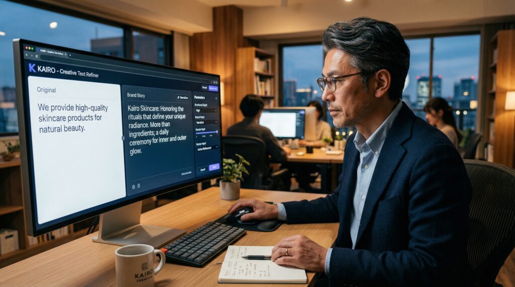 AIはあくまで「草案作成の達人」です。人間は、その草案に「感情の深み」や「ストーリー性」を付け加える役割を担います。特に、その製品が誕生した背景や、開発者の想いといった「エモーショナルな要素」は、現在のところAIが十分に再現しきれない領域です。