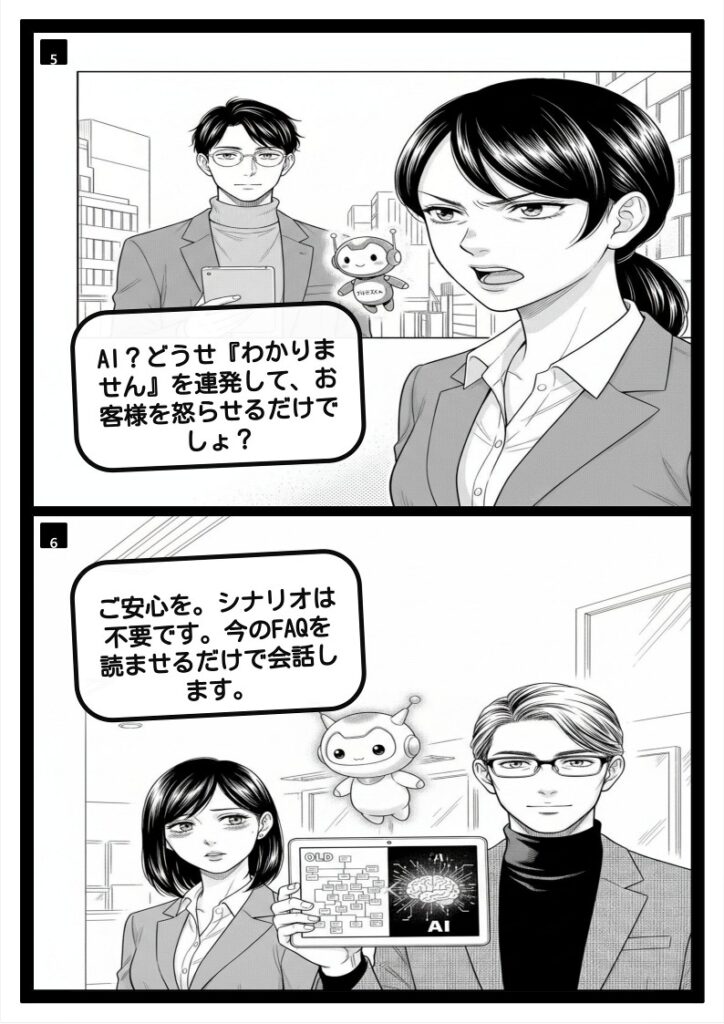 これにより、売り上げに直結する重要な導線ではAIの誤答リスクを排除しつつ、サポート領域ではAIによる自動化の恩恵を受けることができます。