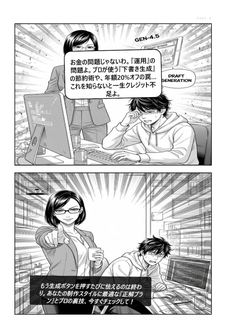 - 生成前にプロンプトや構図を確定させることで、クレジット消費を劇的に抑えられます。